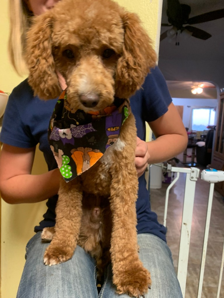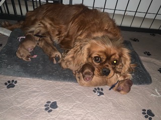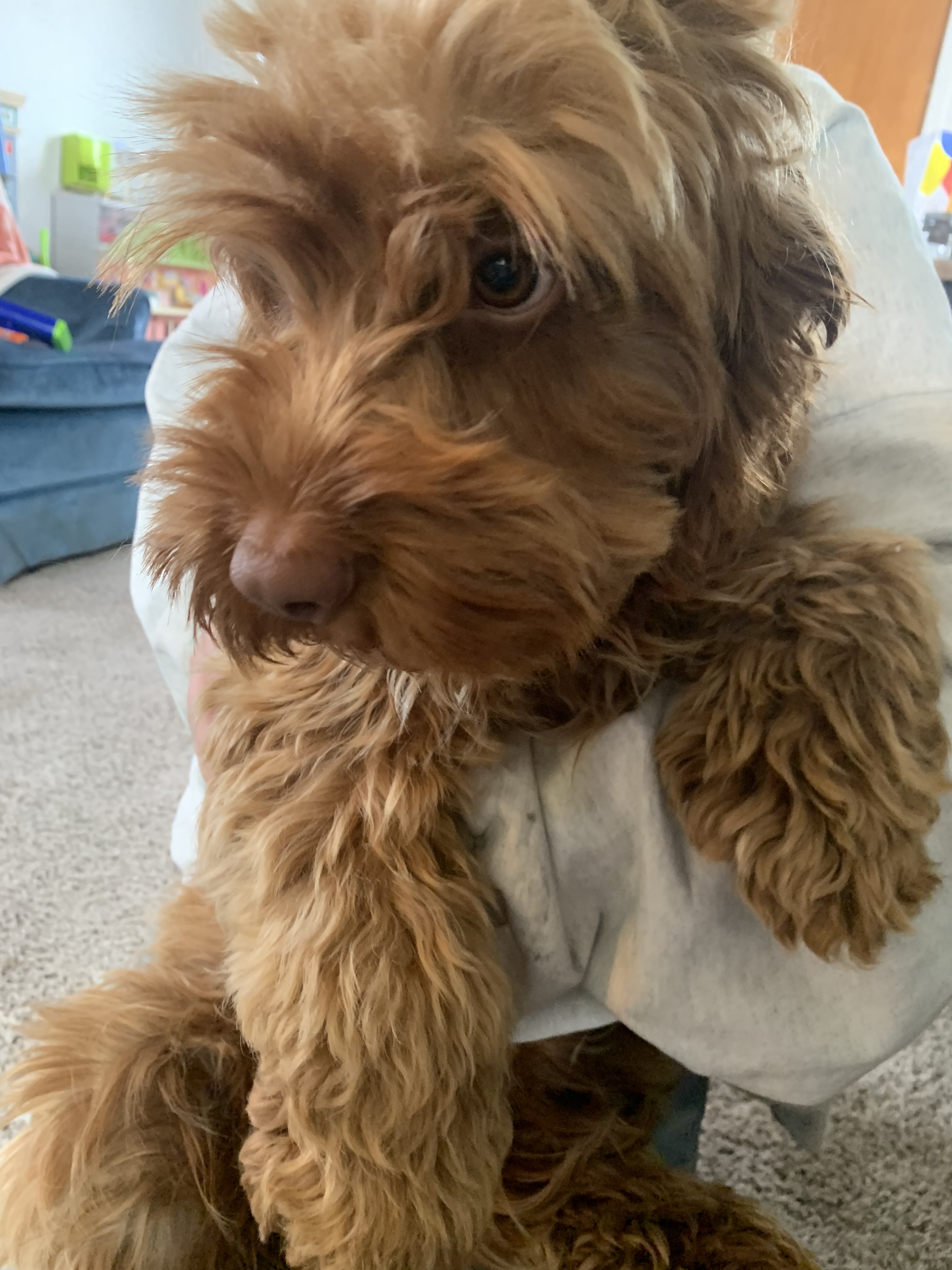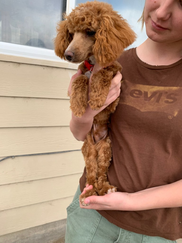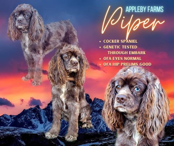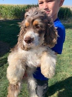 Sora was born and raised here at ApplebyFarm. Her mom is my Dam Gypse and her dad is Bolt a miniature poodle . I am very excited to be able to produce F1b puppies for the people that have allergies and need a more hypoallergenic Cockapoo. F1b puppies are produced when a Cockapoo is breed back to a poodle. Making the pups 3/4th poodle and 1/4th Cocker Spaniel. They tend to have the full poodle coat which means little to no shedding.