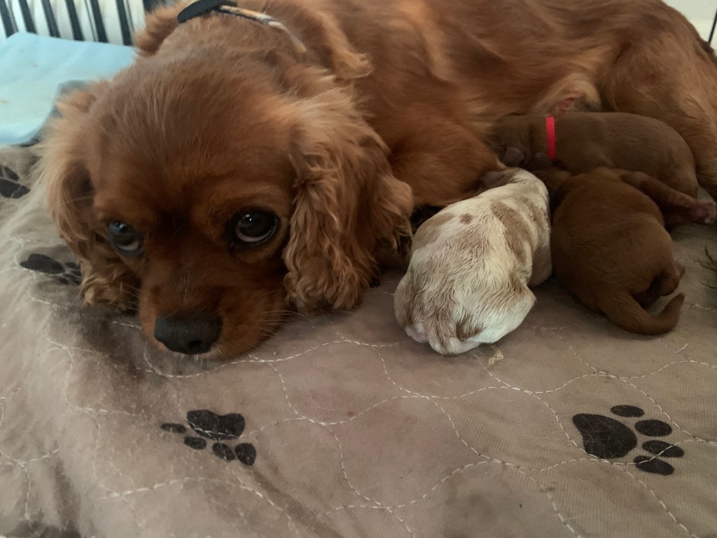 Expecting a litter of F1 Cavapoos the begging of January 2026. Mom is Cari a 12 pound King Charles Spaniel. Dad is Percy a 10 pound miniature poodle.